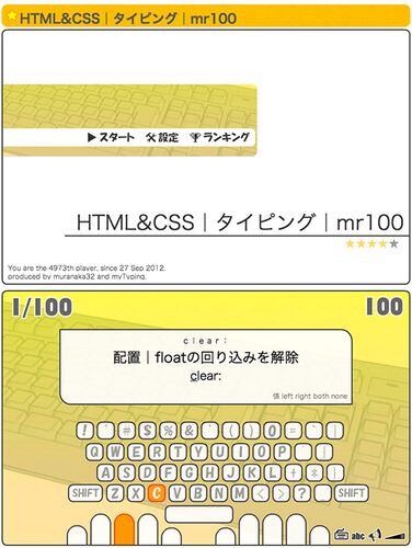 HTMLの入力練習 日本語の入力練習も必要ですが、授業中の8割は欧文の入力になるため、欧文入力の練習をしましょう もちろん、最初からHTMLの入力の練習を始めてもよいと思います HTML&CSS|タイピング|mr100 Mac版Chromeには対応していないようです Webクリ…