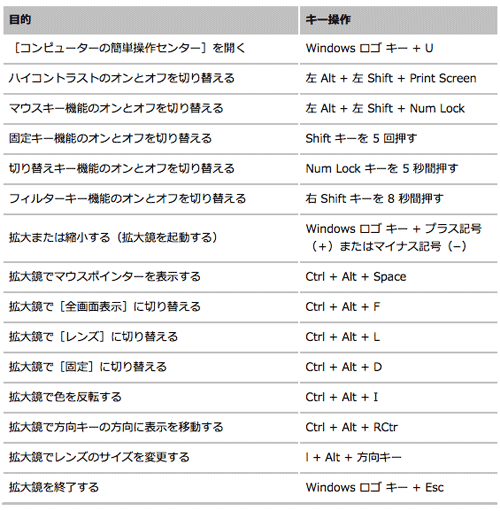 コンピューターのキーボード ショートカット